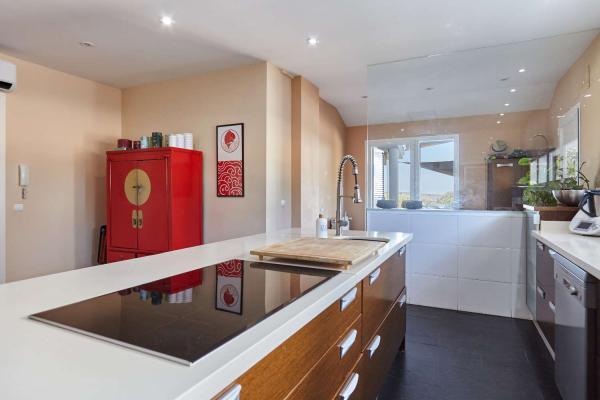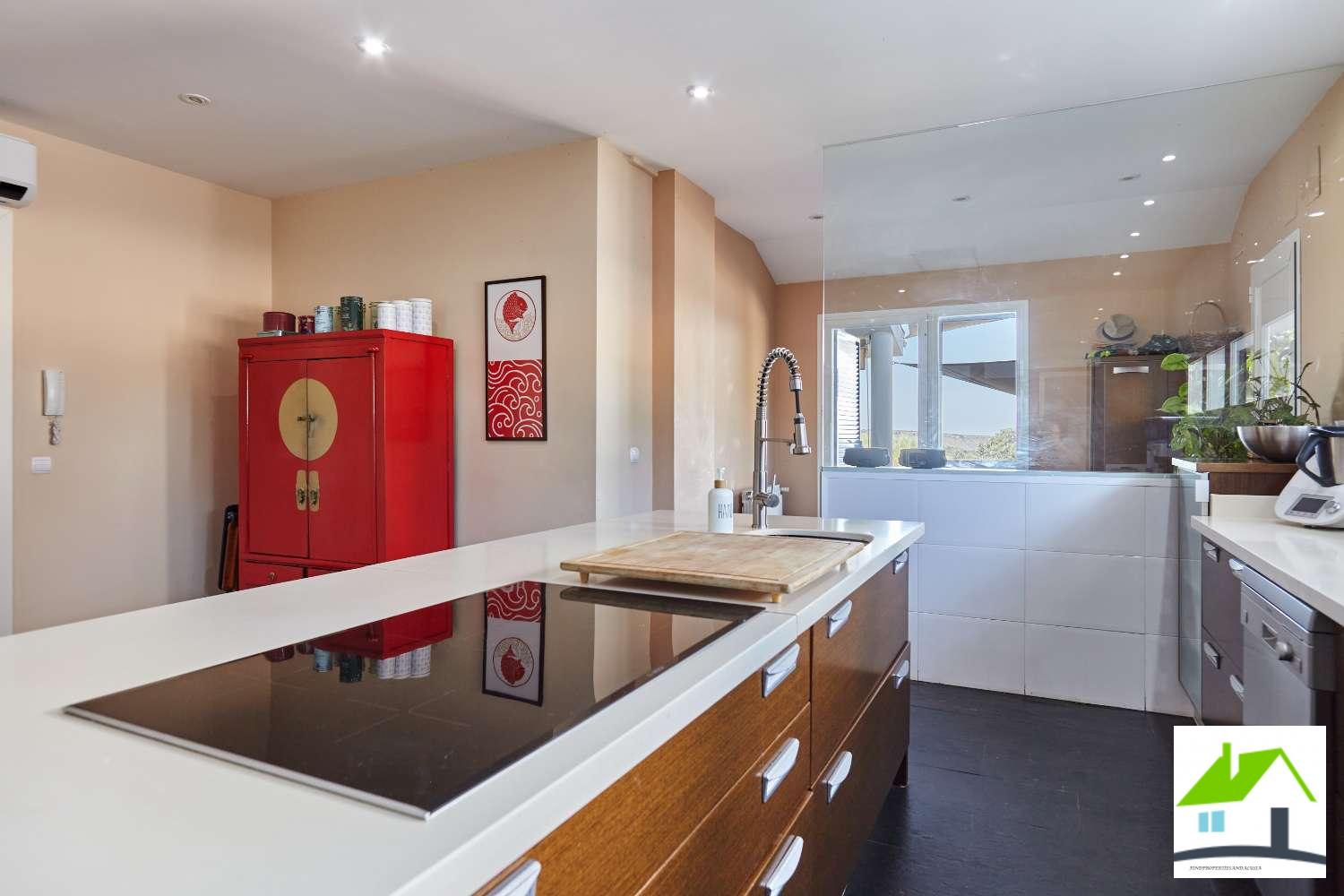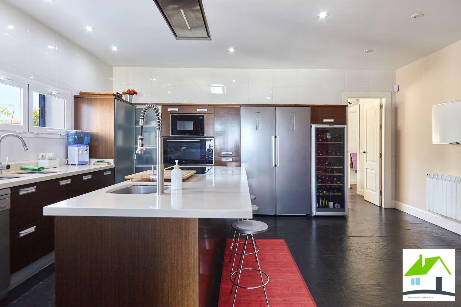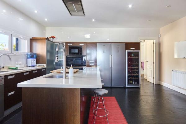 En esta planta tambien podemos encontrar una preciosa y gran cocina con isla,amplia y con un precioso diseño, totalmente equipada y con despensa. Las vistas desde la cocina preciosas.. Todos los electrodomésticos son de alta gama incluidas dos neveras y dos congeladores además de una vinoteca. El suelo es de pizarra natural. Cuenta con zona de lavandería y tendedero.