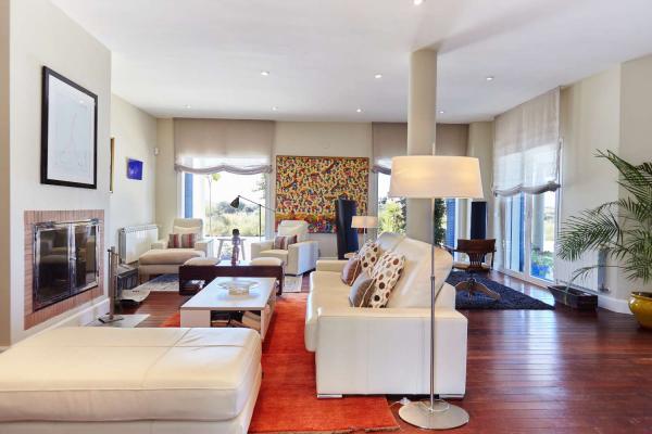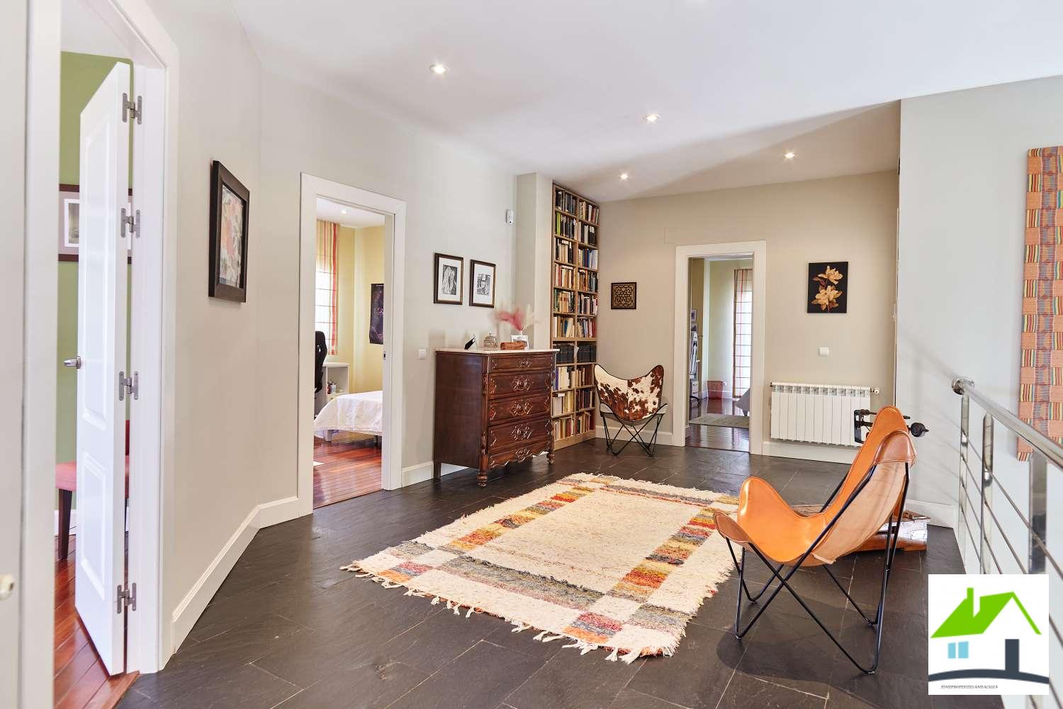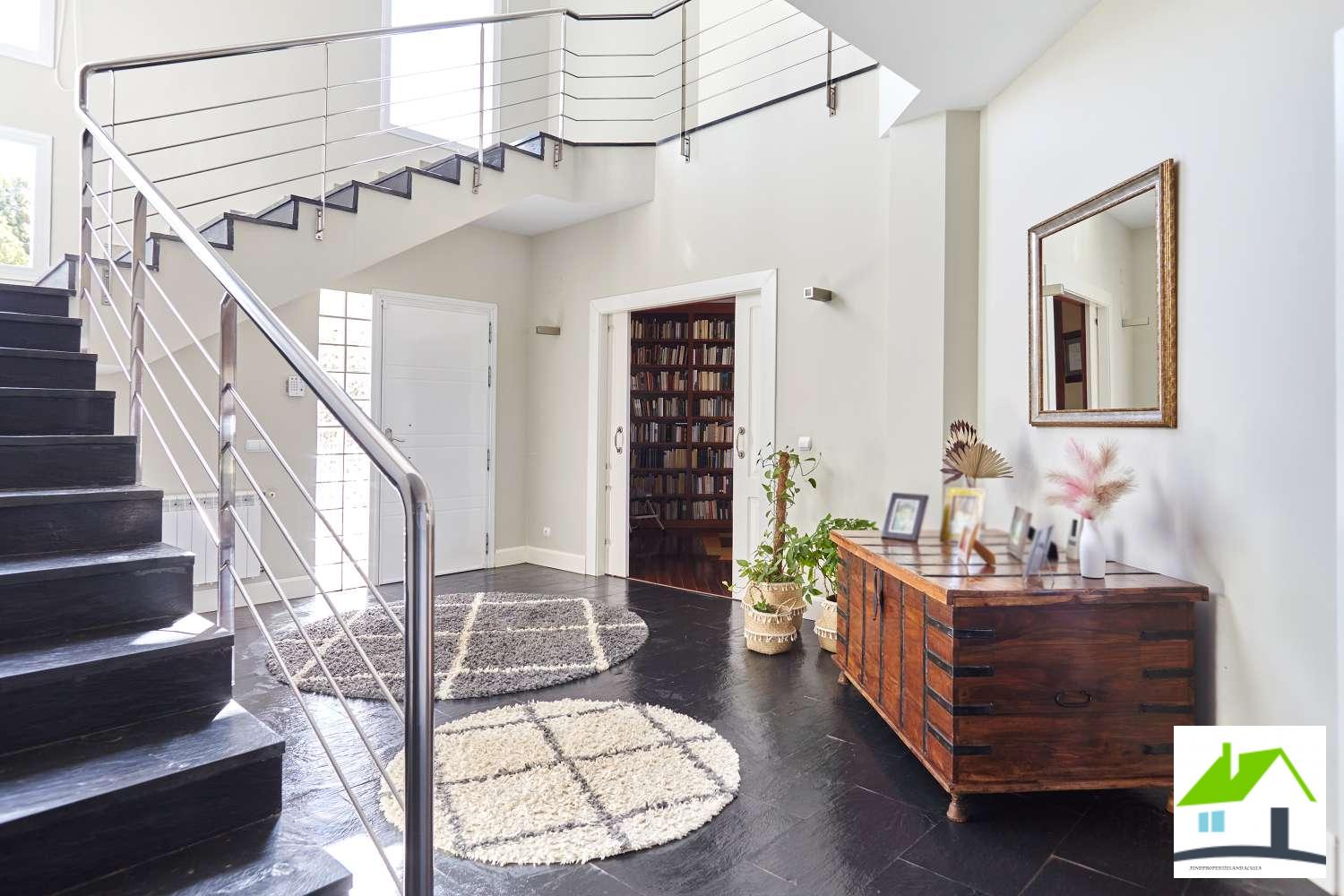 La casa está distribuida en dos plantas, en planta baja nos recibe una maravillosa e iluminada entrada con acceso a la escalera , al gran salón-comedor con chimenea y acceso directo a la zona de porche y vistas al jardín y piscina.